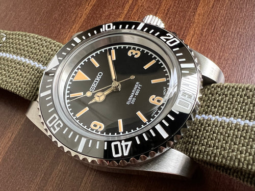 Note: This watch is not affiliated with or built by Seiko Inc. This watch was custom built by Tropic Timeworks using a genuine Seiko automatic movement and aftermarket case, dial, hands, and strap/bracelet.